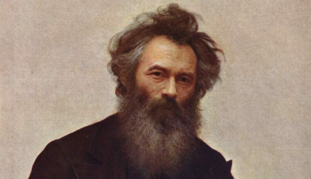 Repin entered the Imperial Academy of Fine Arts in 1863 just as some of the students were finding the academic training restrictive, and the proscribed subject matters they were assigned irrelevant. They broke away to form their own Society, much as Gustav Klimt and his Viennese contemporaries would do some three decades later. From 1870 they started organising exhibitions that would take art to the people in the provinces, and for this reason, they became known as ‘Peredvizhniki’ – ‘The Wanderers’. As well as Ilya Repin, the group included two Ivans, Kramskoi and Shishkin. The second image I’m showing you is a detail of the former’s superb portrait of the latter, partly because it allows me to mention two for the price of one, and partly because, well: beards. The Wanderers painted the best beards, and of the best beards Kramskoi was king.