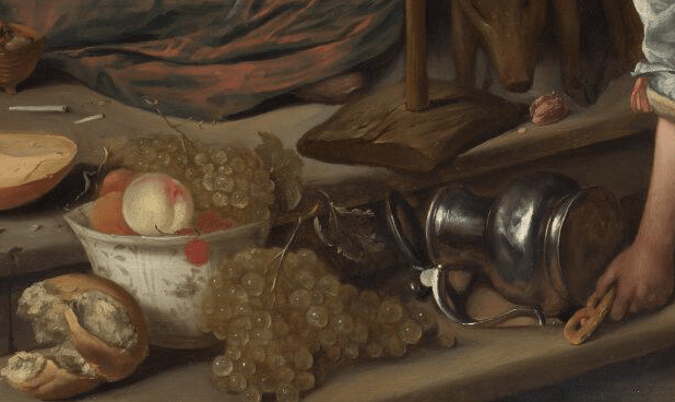 All this is dreadful. It is unbelievably harsh. And yet the painting is – well – fun. It is, after all, one of the very few paintings in the National Gallery where someone is actually smiling. So what is the artist saying? Steen is, of course, a product of his time, and the Dutch Republic had the first real art market. As a result, it also had the first real art collectors. Rather than most paintings being commissioned, or ‘made to measure’, a lot of the work was ‘off the peg’ – so if you wanted a particular genre of painting you would go to a particular artist. If you wanted a fun, satirical painting, you would go to Jan Steen, for example. A consequence of this was that artists’ incomes were not guaranteed, and many of them had a second job. Jan Vermeer was an art dealer, for example. Jan Steen ran a pub. Yes! He sold the very alcohol which could so easily prove to be the mother’s ruin. He would have seen drunkenness and its results every day.