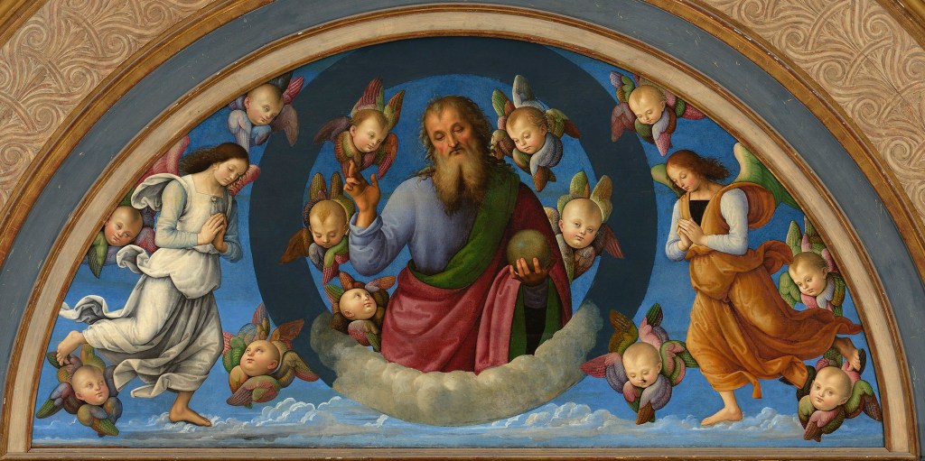 I doubt Perugino was a student of Greek: he must have seen a double rainbow and taken careful note. Or perhaps he was just lucky to hit on the right combination this time. Unfortunately he seems to have forgotten when he repeats the composition for Sansepolcro.