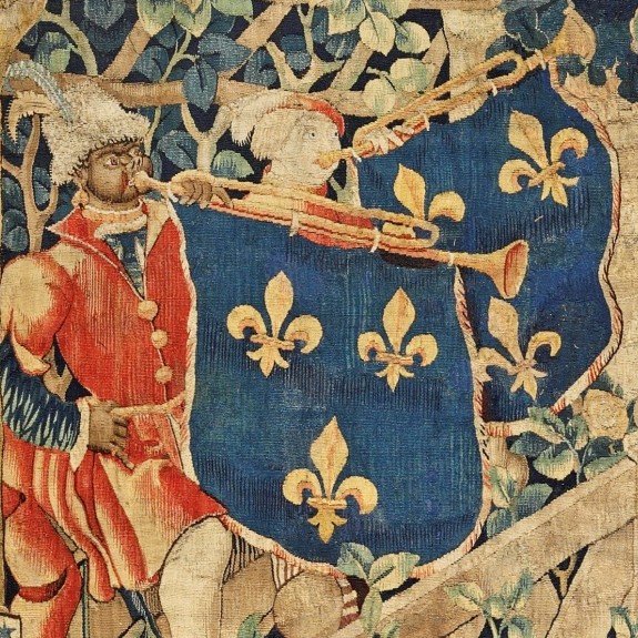 The English Court wasn’t the only one to have black musicians. I’ll leave you for today with a tapestry illustrating a wrestling match during the infamous Field of the Cloth of Gold, a meeting between Henry VIII and François I of France, which took place in 1520. I can’t for the life of me work out who owns this tapestry now – it was sold at Sotheby’s in 2014, and may have passed through Christie’s four years later. However, it is due to feature in an exhibition at Hampton Court between 1 April and 5 September this year to mark the 501st anniversary of the event (yes, a year late because… well, you know). At the top left is another black trumpeter, with the fleur-de-lis on his banner, as if François I, watching the bout at the top right, was all-too conscious of the need to keep up with the Tudors. Maybe our musician is playing for yet another monarch…