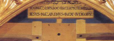 We have done exactly as I said we would – we have looked up, beyond the cross even, to the inscription attached to the top. If I think back over all of the years talking about art, the question I have been asked most often is, in all probability, ‘What does that say?’. Which surprises me. Well, it is the direct result of something mentioned in all four gospels, but which is described most thoroughly in John 19:19-22