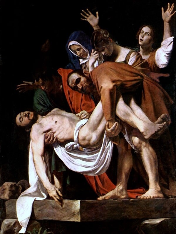 The similarity to Christ in Caravaggio’s Entombment is not coincidental. David, as the Revolution’s chief artist during the brief Republic, not only knew the power of painting, but also wanted to find new martyrs to inspire the people, and to reaffirm their faith in the machinations of political change. Marat was that martyr, and portraying him on this canvas, alone and at work, was a powerful and easily comprehensible masterstroke. Caravaggio echoes the fall of Christ’s arm with the tumbling shroud, and David echoes the shroud with the sheet in Marat’s bath.