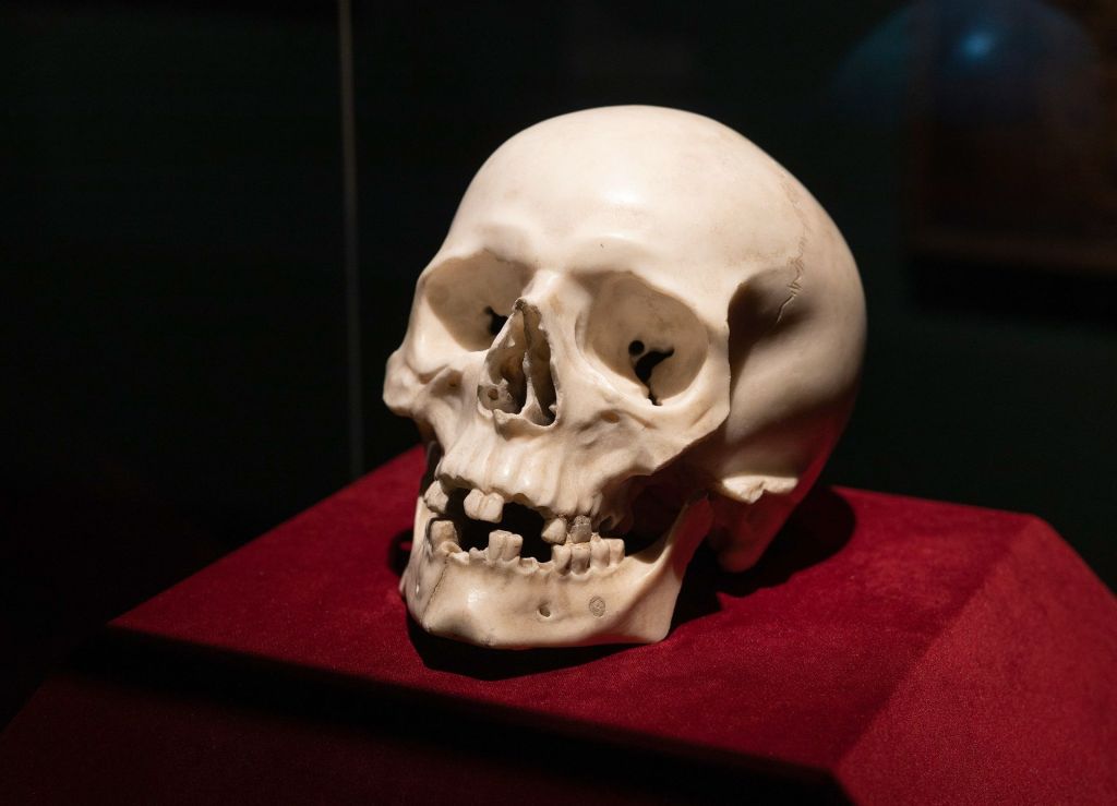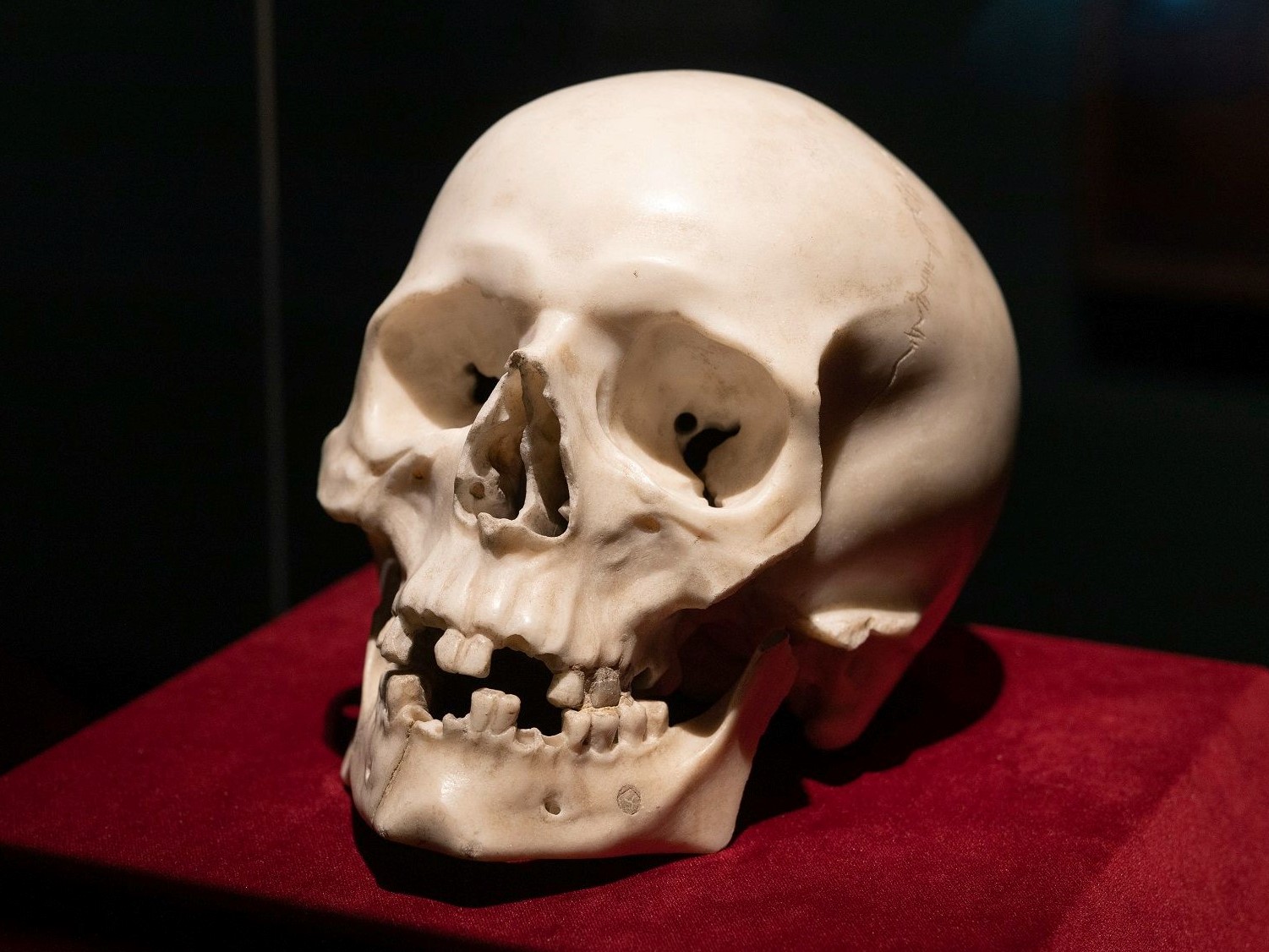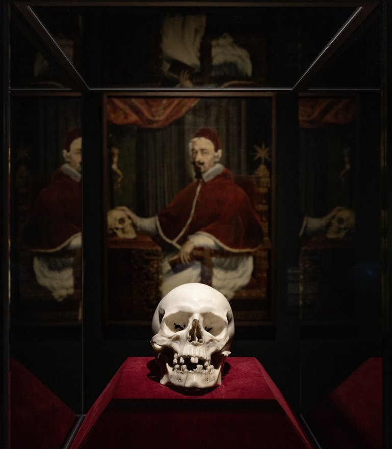 The Chigi collection had remained with the family, having been put together by one of the nephews of Pope Alexander VII (Fabio Chigi). Further research revealed that the pope had commissioned the skull directly from Bernini in 1655, shortly after he was elected. Bernini worked under eight different popes, but not all of them were great patrons of the arts – or for that matter, interested in his work. Alexander VII’s predecessor, Innocent X (Giovanni Battista Pamphilj) had not been a great fan, and consequently, with a commission from the new pontiff, Bernini jumped to it and carved the skull himself, rather than handing a model to one of the assistants and letting them get on with the hard graft: it would be good to make the right impression. This choice paid off: Alexander VII turned out to be one of Bernini’s most ardent admirer’s and forthcoming patrons. It was not just the skull that Alexander commissioned in 1655 – there was also a life-size sarcophagus. The latter sat under the Pope’s desk, the former on top of it, both constant reminders that death comes to us all. Morbid, you might think, but given that, following the doctrine of Apostolic Succession, the Pope is St Peter’s successor, he is nominally in charge of the Keys to the Kingdom of Heaven. It was in his best interests to remember – and to remind us – that our actions will determine where we go after death. It was also relevant that, shortly after his election, there was an outbreak of the plague in Rome, and death visited every street. Alexander was quick off the mark – he insisted people wear masks, he introduced systems of self-isolation, and made sure people were quarantined. You know the drill. He might even have been painted holding this sculpture.