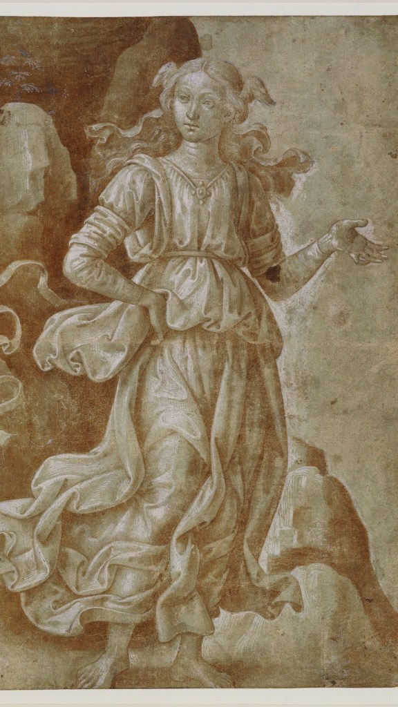 This beautifully delicate drawing in the Royal Collection was used by Giovanni as the model for various works, but most directly for Clio, the Muse of History. The painting itself is one of several surviving Muses (not all nine have been preserved), and is probably the one in the best condition.