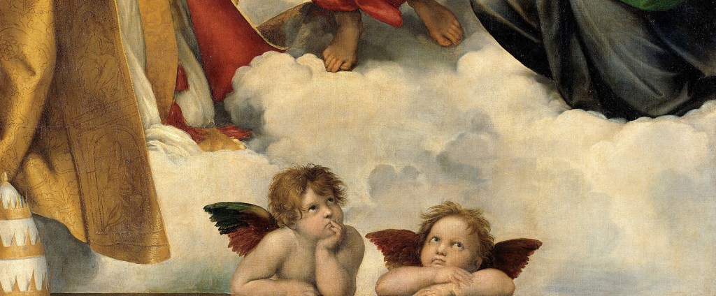 Thank you for this. A very large reproduction of this painting formed the back wall of the church hall and presided over my 1950’s Sunday School classes. I have never seen the original but retain an affection for it, and for the cherubs in particular. I did not get much further in my early appreciation than identifying the Virgin Mary and the baby Jesus, so it is good to know now! Look forward to tomorrow!