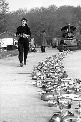 This is Judas accepts the Thirty Pieces of Silver, Giotto’s version of the biblical story which provides the title for today’s work. It was painted in the Scrovegni Chapel in Padua, effectively a thirteenth century ‘installation’ which occupied many of my previous posts, as many of you will remember (for this particular episode, see 102 – Jesus… and Judas). Judas, in yellow, the devil goading him on, accepts a purse containing thirty pieces of silver, as his reward for betraying Jesus to the authorities. As a result, Jesus was arrested, tried, condemned, and crucified. Through his sacrifice, and triumph over death, Christians believe that we are redeemed of our sins, and given new life in Christ. Having betrayed the objects, and having condemned them, Parker gives them new life – she redeems them, and they become art. You could say, more simply, that she recycled them, or made old things new, or gave them a new life, but she sees her artistic practice as a form of transubstantiation. It will not surprise you to learn that she was brought up a Catholic. Transubstantiation is the word used to describe what happens to the bread during mass (and I can’t help noticing that for Catholics, the ‘bread’ comes in the form of wafers, small, thin, circular objects, their shape not unlike that of each of the Thirty Pieces). The bread changes its substance, and becomes the actual body of Christ, even though the ‘accidents’ of the bread – its appearance, its texture, its taste even – remain the same. Well, the objects Parker used are still silver plate objects, and yet they are now art: transubstantiation has occurred. Another word would be alchemy – base metals are turned to gold. Alchemists also used the word ‘redemption’. After all, gold is pure and unchanging, just like God. But did she have to flatten the objects?