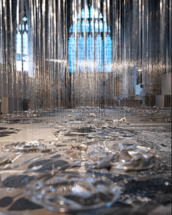 The objects are resurrected, and even, like Jesus start to ascend, floating above the floor at the average height of the objects when they were new. There is a rigor here which is rather surprising. They are hung in a minimalist grid, and indeed some artists would have been happy arranging circles in a rectangle, five wide by six deep. Think, for example, of Equivalent VIII, the ‘Tate bricks’, the eighth equivalent way Carl André found to arrange 120 bricks. But Parker takes the cold (but, to me, compelling) logic of minimalism, and renders it humane – it holds life, and hope, not just rigor. Nor is her work like the newly-minted Readymades to which Marcel Duchamp (a hero of Parker’s) gave new thoughts: her work has a depth, and thought, and feeling – and more than a little bit of magic. Do try and see the work in person in the exhibition at Tate Britain before it closes on 16 October. Or failing that (or as an introduction to that), come to my talk on Monday! Given all that I’ve said, I wish I’d seen the installation in St Mary’s Church in York…