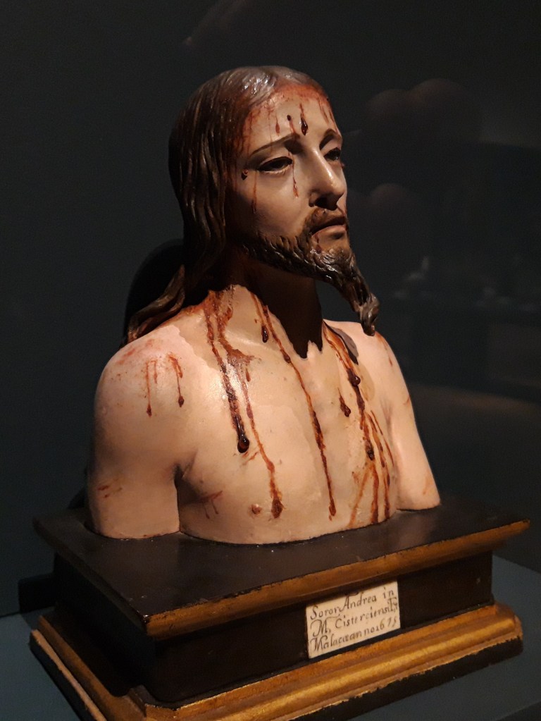 The label painted onto the base of the sculpture starts ‘Soror Andrea’ – Sister Andrea. She was a nun. ‘Soror Andrea in M. Cisterçiensi F.t’ – Sister Andrea made this in the Cistercian Monastery (don’t get hung up on the English usage that monks live in monasteries and nuns live in convents: the words are effectively interchangeable). The last line reads (well, I hope it does, this is my transcription, as I can’t find an official one anywhere), ‘Malace anno 1675’. Málaga, in the year 1675. So, Andrea de Mena y Bitoria was a nun in the Cistercian monastery in Malaga. We also know, given that I’ve given you her full name, who her father and mother were: Mr de Mena and Ms Bitoria respectively. Which is why I nearly missed that she was a woman. My response, when I read the name on the label, was, ‘ah yes, de Mena – but I don’t remember that being his first name’. Not that I am that familiar with Pedro de Mena’s work, but I do remember a fantastic sculpture of his being bought by the Fitzwilliam Museum a few years back, and have talked about it when discussing sculptural materials. Compare and contrast:
