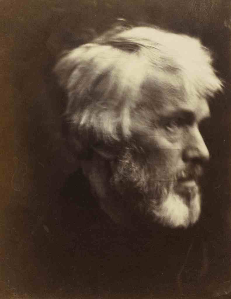 This was not the first time that Carlyle had been the subject of art. Five years before the sittings for Whistler had begun, he was photographed by one of the great, early photographers, Julia Margaret Cameron. She was so determined to take his picture that she travelled all the way from her home on the Isle of Wight to London to meet him – with her camera. Cameras were not the easiest things to transport in the 1860s. One of the resulting portrait is below, on the left. She later wrote, ‘When I have had such men before my camera my whole soul has endeavored to do its duty towards them in recording the greatness of the inner as well as the features of the outer man. The photograph thus taken has been almost the embodiment of a prayer.’ Carlyle also appeared in Ford Madox Brown’s masterpiece, Work – although I’m assuming he didn’t pose for this. He appears in a detail on the right of the picture, and you can recognise him as much from the signature stick, on which he leans, as from the likeness (although as a portrait – or even a face – I think it is sadly lacking: possibly the poorest passage in the painting).