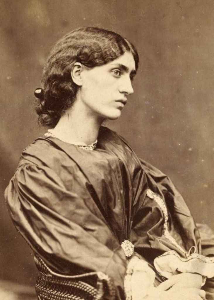 It is, surely, the archetypal Pre-Raphaelite painting – a good story, beautifully told. And Jane Morris is surely the archetypal Pre-Raphaelite woman, with her flowing red hair and pouting red lips. This is so much the case, that I often used to wonder how much ‘art’ was going on here? How much was Rossetti making her into his ideal through his use of paint? On seeing photographs, though, you realise there was no invention. She really did look like this. You just have to compare the painting with this detail from a photograph taken by John R. Parsons in 1865, one of a series in which Morris was posed by Rossetti himself.