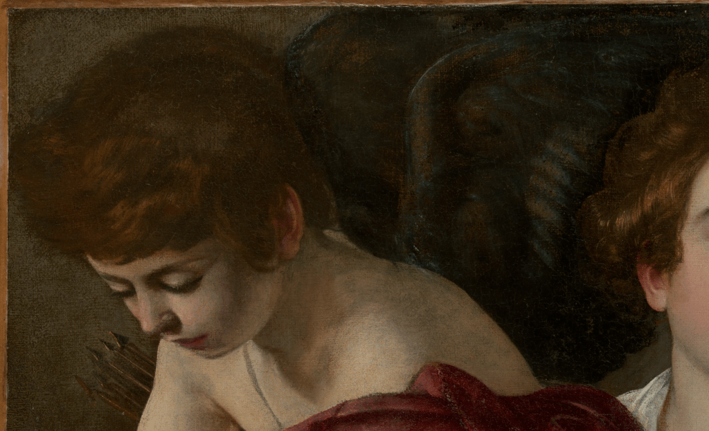 But why grapes? One suggestion is that, if this is Cupid, then we are clearly in the world of allegory, and while the other three are musicians, they are also a representation of the idea of ‘Music’ – which is what an allegory is. Most artists at this time, when painting an allegory, would have turned to the textbook, Cesare Ripa’s Iconologia. Published first in Rome in 1593, I would suggest that this may just be too early for it to be entirely familiar in 1597. In 1603 a second edition included illustrations, which were often more influential – and we are definitely to early for that. As a feminine noun, La Musica, like so many other personifications, was seen by Ripa as a woman – but Caravaggio was never one to follow the party line. As it happens, Ripa does mention a lute and a viol (an early form of violin, which the latter ‘eclipsed’ in the 17th century) and an open score, but he also says that music should be shown with wine, ‘perche la musica fù ritrovata per tener gli animi allegri come fà il vino…’ (‘because music was found to keep the spirits cheerful like wine does’). Maybe we’re getting in there early with the grapes, which Cupid is plucking in preparation. This was Caravaggio’s first Cupid – young, innocent, busy. A few years later, and painting for Vincenzo Giustiniani, his next major patron (who lived just round the corner from del Monte), Caravaggio would produce a very different image, brash, bold, and inherently destructive. It is that Victorious Cupid which we will be talking about on Monday.