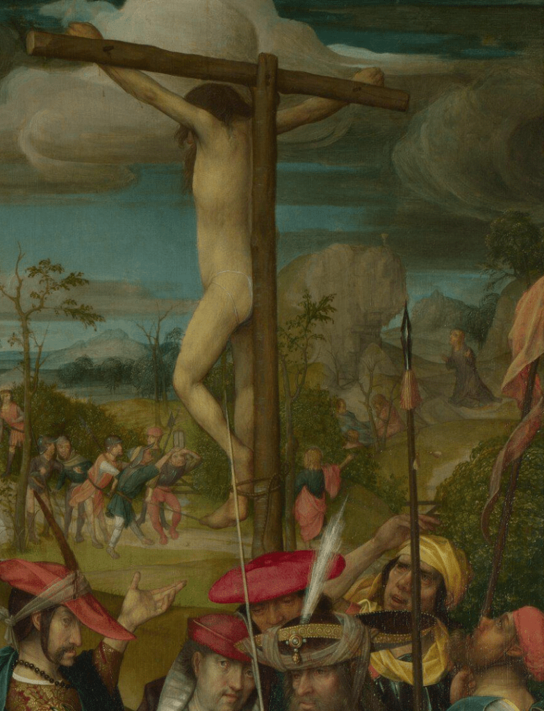 Talking of Michelangelo, thank you so much to all of you who were able to join me yesterday for the first in the series of Michelangelo Matters. There are two more to go, over the next two Mondays, looking first at the Sistine Chapel as a whole (and the ignudi, or ‘nudes’ as one part of the decoration), and then at some of the master’s most exquisite drawings. You can find details of these talks on the diary page. Because I was busy yesterday with the lectures, I didn’t have time to write today’s post in advance, as I sometimes do, and then this morning I had to have my eyes seen to (i.e. I had an appointment with the optician). And I’ve just had a lengthy meeting with Art History Abroad… so apologies for today’s delayed posting! Let’s see what happens tomorrow. After all, we’ve arrived at the Crucifixion, what else can there be?